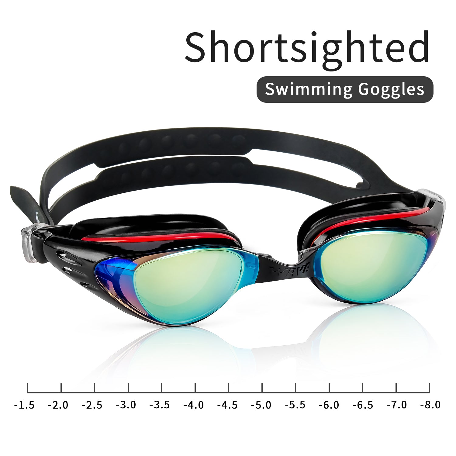Wave Myopia Prescription Shortsighted Swim Goggles Glasses Optical Adults Electroplate