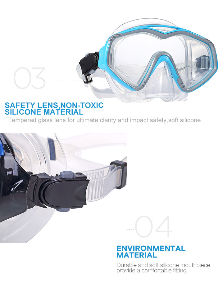 Wave Diving Snorkel Mask Set Kit Adult Swimming Silicone Resistant Tempered Glass
